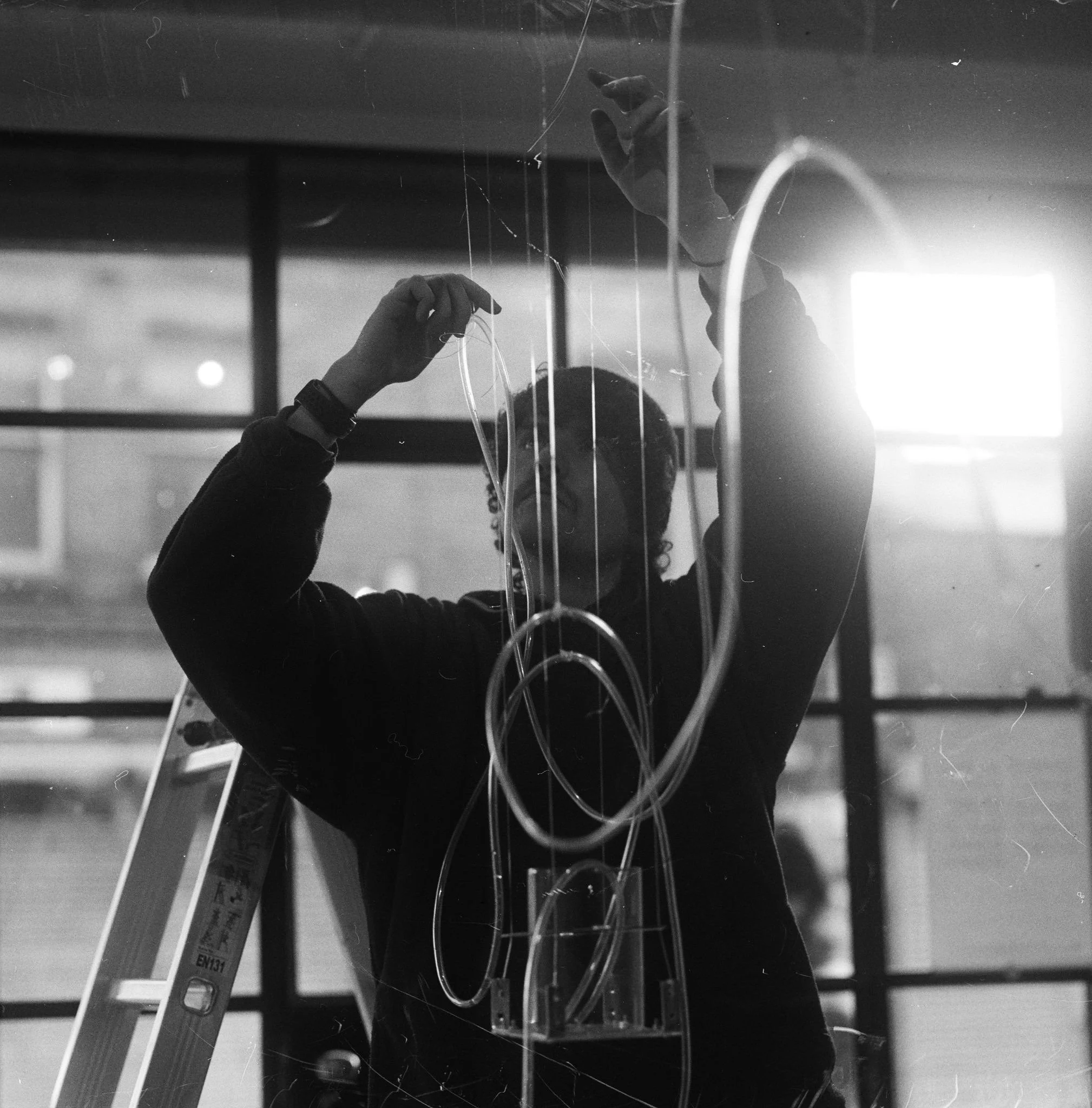 Is a technology installation created as part of an ongoing research and development work using clear PVC tubing, glass, plexiglass, and motors connected to an Arduino patch. Passing of water coming back as a theme from previous works, Tadhg’s idea is to develop this work at a lorger scale for exhibition. Although this work is mainly focused on the sculptural and technology elements, this has a timed sound accompaniment of a self playing prepared piano patch via Arduino again.